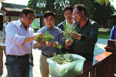 负责『黄帝手植柏』保存繁育项目研究的专家对采集到的古柏枝叶条进行观察论证本组图片由王春梅供图 西北农林科技大学专家郭军战架着梯子,从黄帝手植柏上采集克隆种苗用的枝叶 王春梅供图 黄帝手植柏黄帝手植柏位于黄帝陵景区,树高20余米,胸径11米,苍劲挺拔,冠盖蔽...