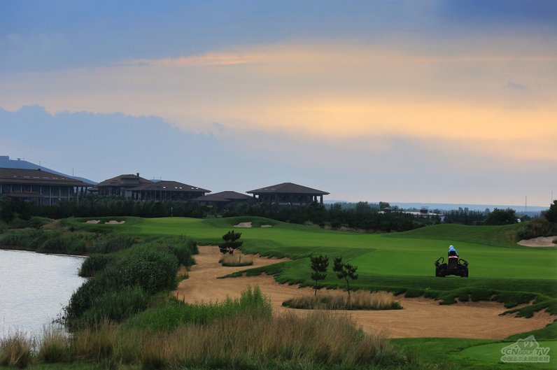 杨帆:金山国际俱乐部位于黄海丁字湾畔,是青岛市最大的高尔夫俱乐部,也是最具青岛特色的球场。俱乐部拥有总面积15000平方米的会所、四星级酒店,为球员、球友提供最舒适的餐饮、住宿、娱乐等需求。总计54洞的金山高尔夫球场由Schmidt Curley 设计,包括三个标准18洞高尔夫球场。2014希望赛山东青岛站的赛场正是A场——金山球场,球场的TEE台、球道全部使用本特草,各种障碍的设置使得不同水平的球手在每个Tee台上都要认真选择自己的击球策略。球场依傍大海,与周围环境充分融合,显现出浑然天成的景观气势,散发出苏格兰式球场的独特气质。