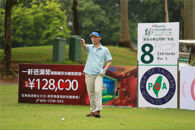 5月11日上午7:00,大中华长青高尔夫巡回赛首场职业长青赛开始第一轮比赛,TSPGA理事长沈忠贤开出了历史性的第一杆。56岁老将、2015年度TSPGA积分排名第四的张宏达第一轮完成69杆(-3),一杆领先六十位 TSPGA职业长青选手,他今天共打出六只小鸟三个柏忌。许添来和杨思诚完成70杆目前并列第二。卢建顺和翁永田再落后一杆。第一轮仅五位选手打出低标准杆成绩。职业选手最高杆为黄胜吉91杆。