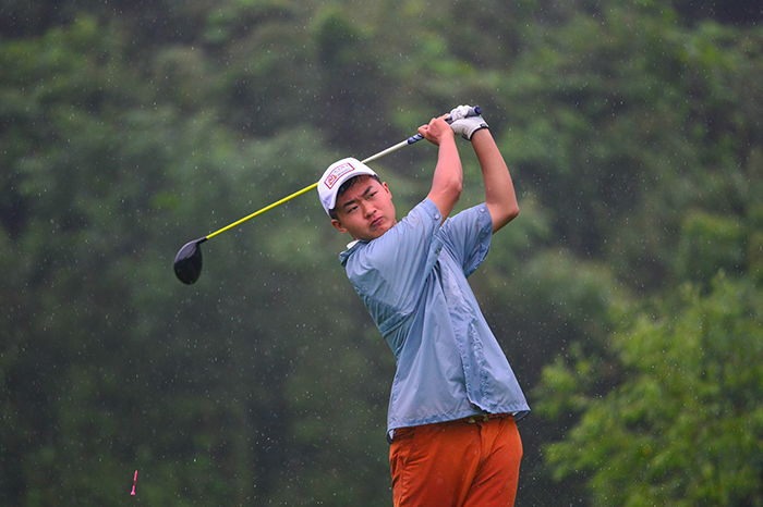 倾盆大雨再度降临在最后一轮比赛,给小选手们平添了“雨战”的挑战,也使得场上的争冠形势变得非常激烈。今年在广州站获得第3名的翁隽宇迎来了美妙的开局,从后9洞出发,在前半场抓下4只小鸟,一度攀升至单独领先,然而前两轮领先的潘琦昊表现稳健,在最后9个洞全部保帕,而翁隽宇则出现了1个柏忌、1个双柏忌以及1个三柏忌。最终,潘琦昊打出73杆(+1),取得了221杆(+5)的总成绩,以五杆优势击败了以74杆(+2)收杆的翁隽宇,夺得了男子A组的冠军。