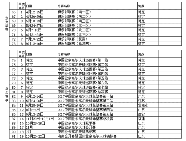 1、2017中巡赛是由中高协主办的中国境内唯一男子职业高尔夫球巡回赛,常规赛事总场次将不少于12场,单站赛事奖金将不少于20万美金,由中奥体育体产业有限公司负责承办。
