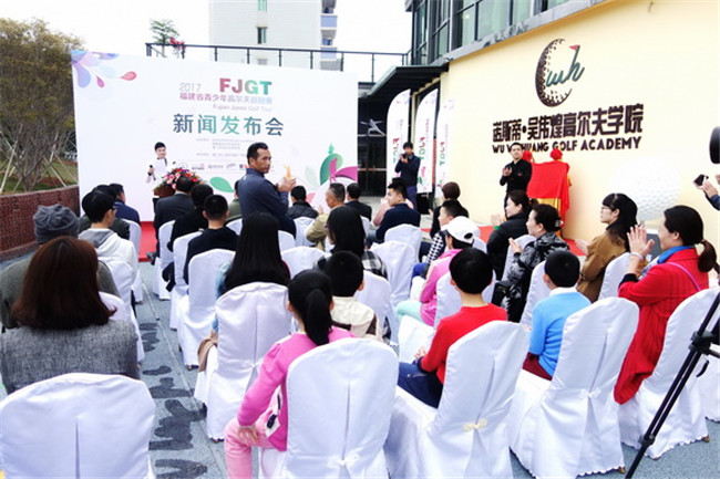 厦门伟之星体育推广有限公司董事长、诺斯蒂·吴伟煌高尔夫学院院长吴伟煌在发布会现场致辞说:“各位领导、嘉宾、朋友们:首先请让我代表赛事组委会感谢大家光临今天的发布会。我打球时已经成年了,没有教练、没有比赛,一切靠自己摸索。现在的孩子们从几岁就可以开始这项运动,今年我们又有了6场专为福建青少年高尔夫球手办的比赛,叫福建省青少年高尔夫巡回赛。在福建省体育局、省高协和省内各地的高协、球场和赞助商的大力支持下,厦门伟之星体育推广有限公司作为承办公司,深感荣幸和受到鼓舞,同时也感到重大!希望在我们大家的共同努力下,用我们的能力、资源和经验帮助孩子们更好地成长,我们福建的青少年高尔夫运动会开展得更好,将出现更多的高手,为国争光!再次感谢省体育局、省高协、厦门高协、感谢赞助商的支持!感谢媒体积极报道这项健康的运动!”