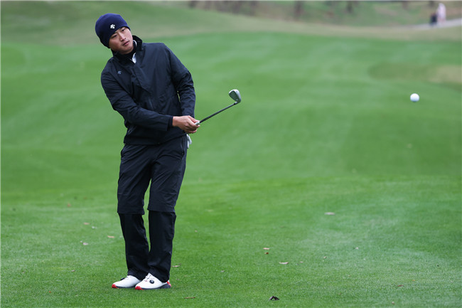 两位职业赛场的名将:元天和苏东都交出了70杆,他们以两轮142杆排在并列第二位。在北方长大的苏东表示自己更适应寒冷的天气,开球远的优势也很适合这个球场,所以这两轮都打得不错,“接下来的两轮,我会按照既定的策略去打,享受比赛!”